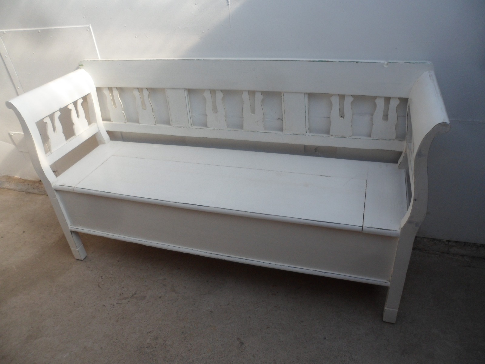 Pretty Painted White Motif Old Pine 2/3 Seater Box Settle / Bench