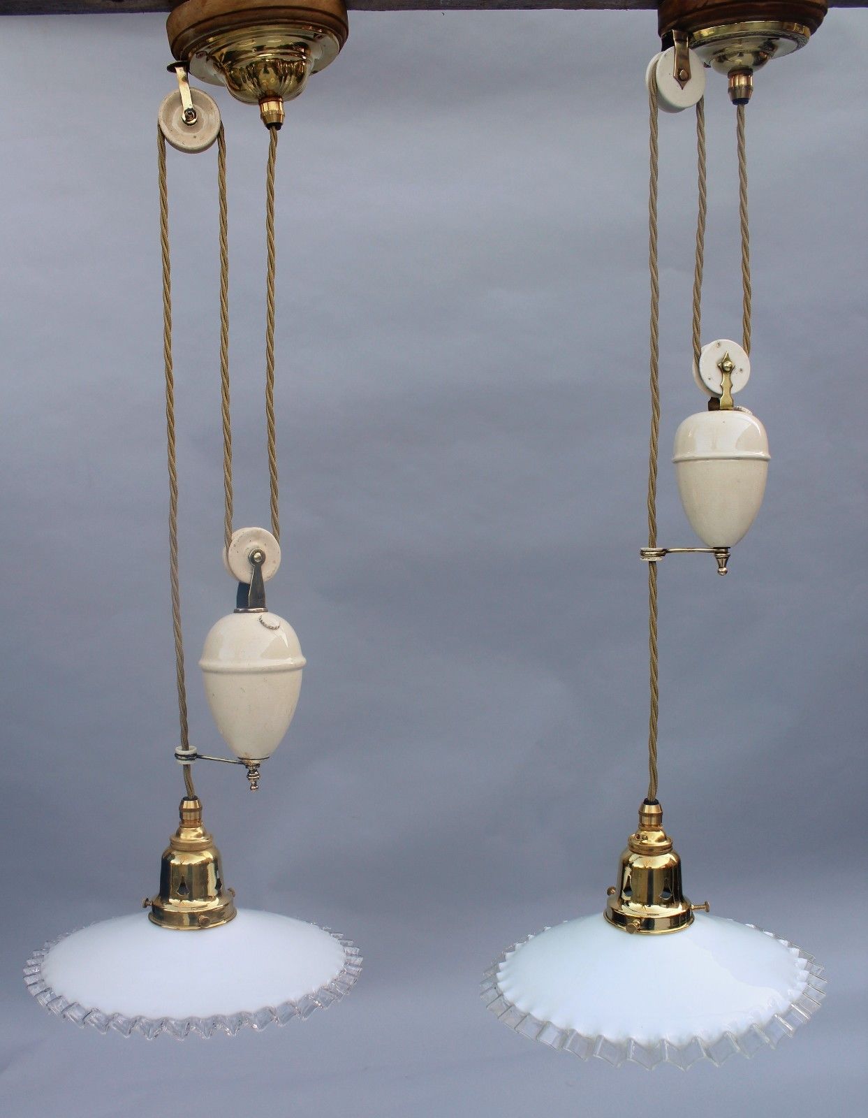 Pretty Pair of Antique Rise & Fall Lights c.1900