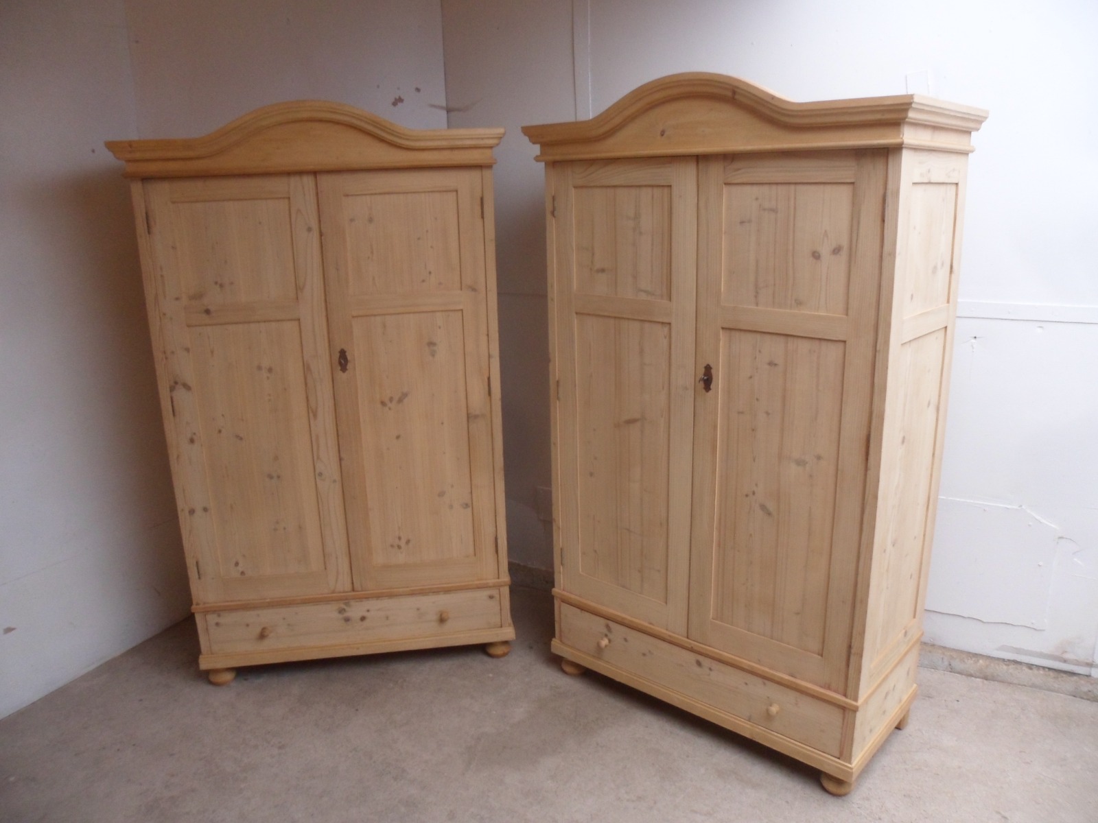 Pretty Pair of Cottage Style Antique/Old Pine Knockdown Wardrobes to wax / paint