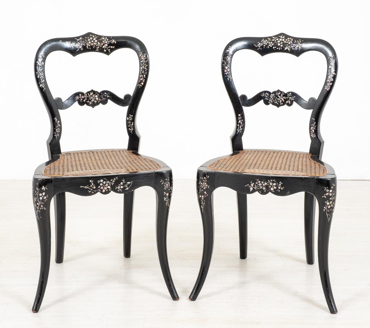 Pretty Pair of Ebonised & Mother of Pearl Side Chairs