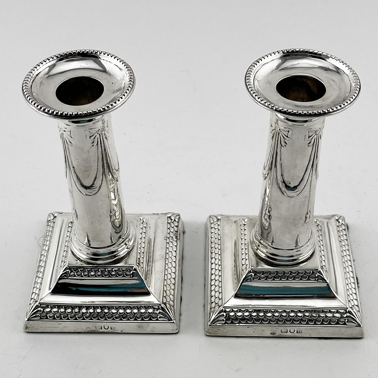 Pretty Pair of Edwardian Sterling Silver Candlesticks