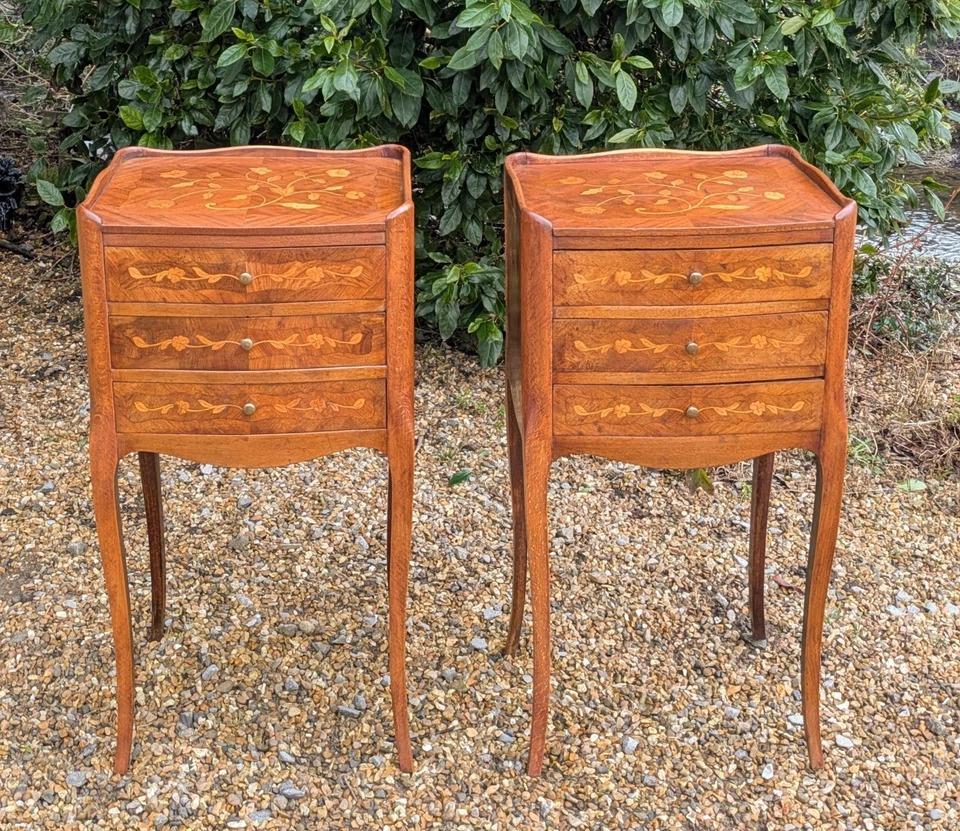 Pretty Pair of French Inlaid Bedside Cabinets (1 of 8)