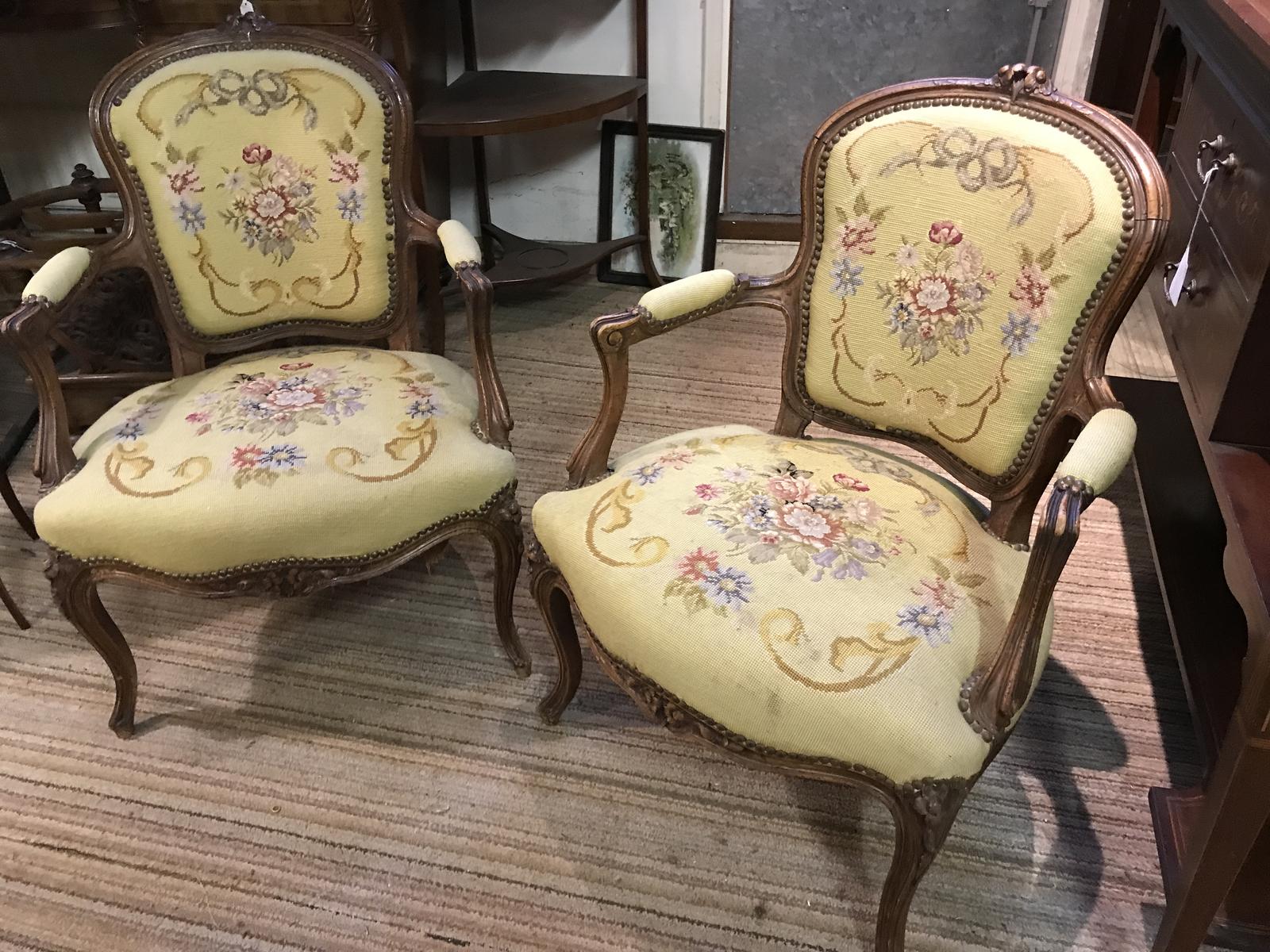 Pretty Pair of French Walnut Armchairs. (1 of 16)