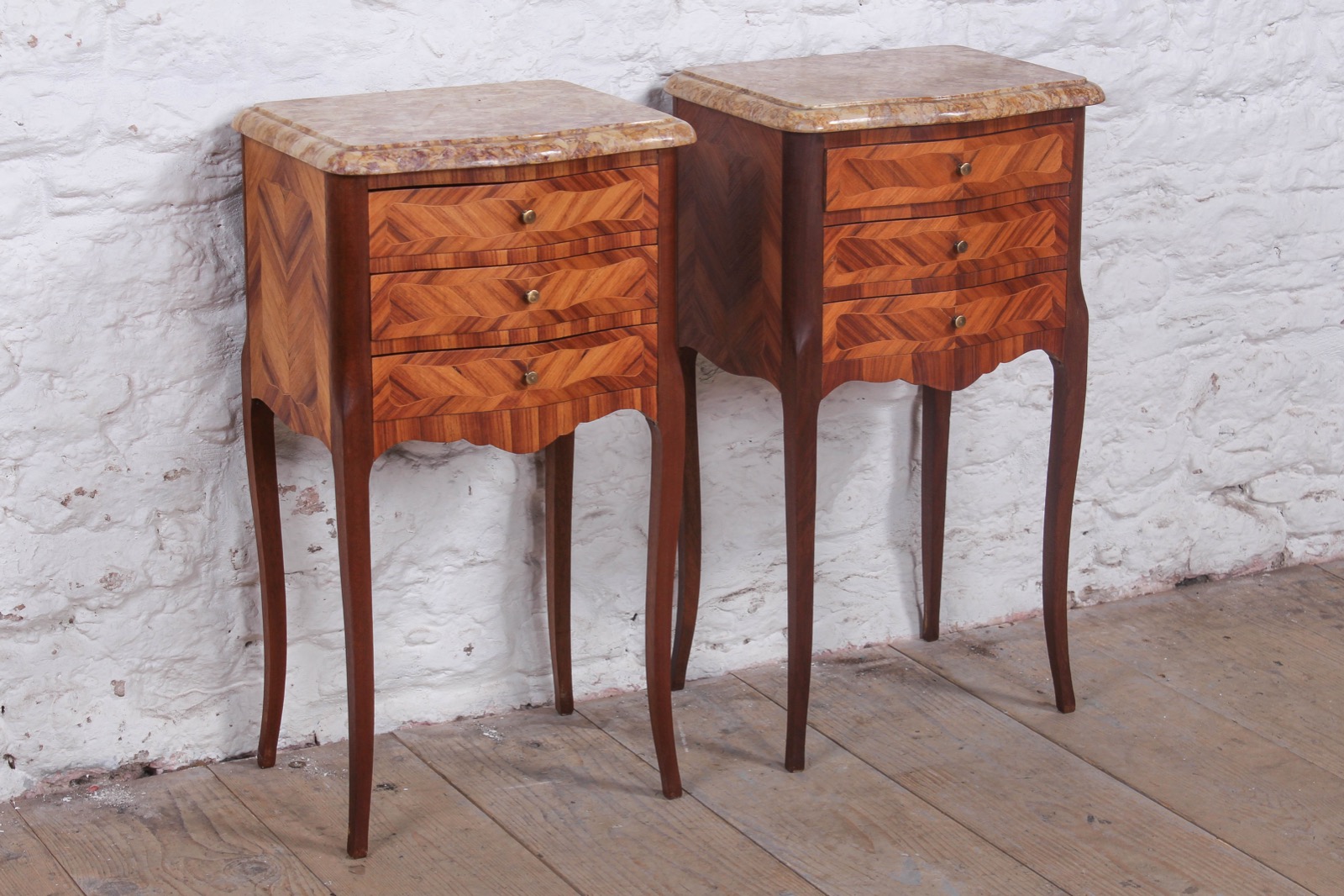 Pretty Pair of French Walnut Veneer Bedsides c.1920 (1 of 1)