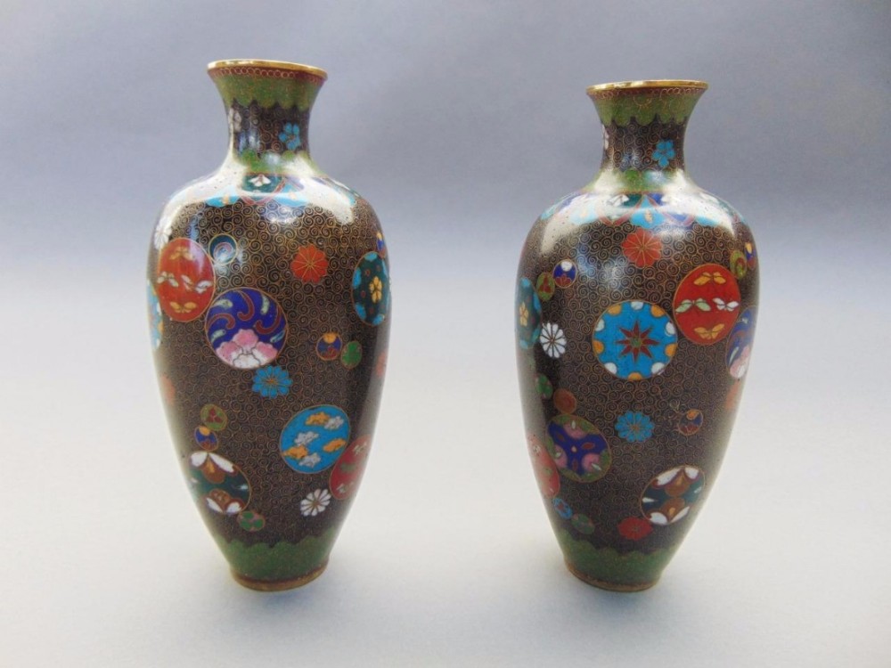 Pretty Pair of Japanese Cloisonne Vases Meiji Period c.1890 (1 of 1)