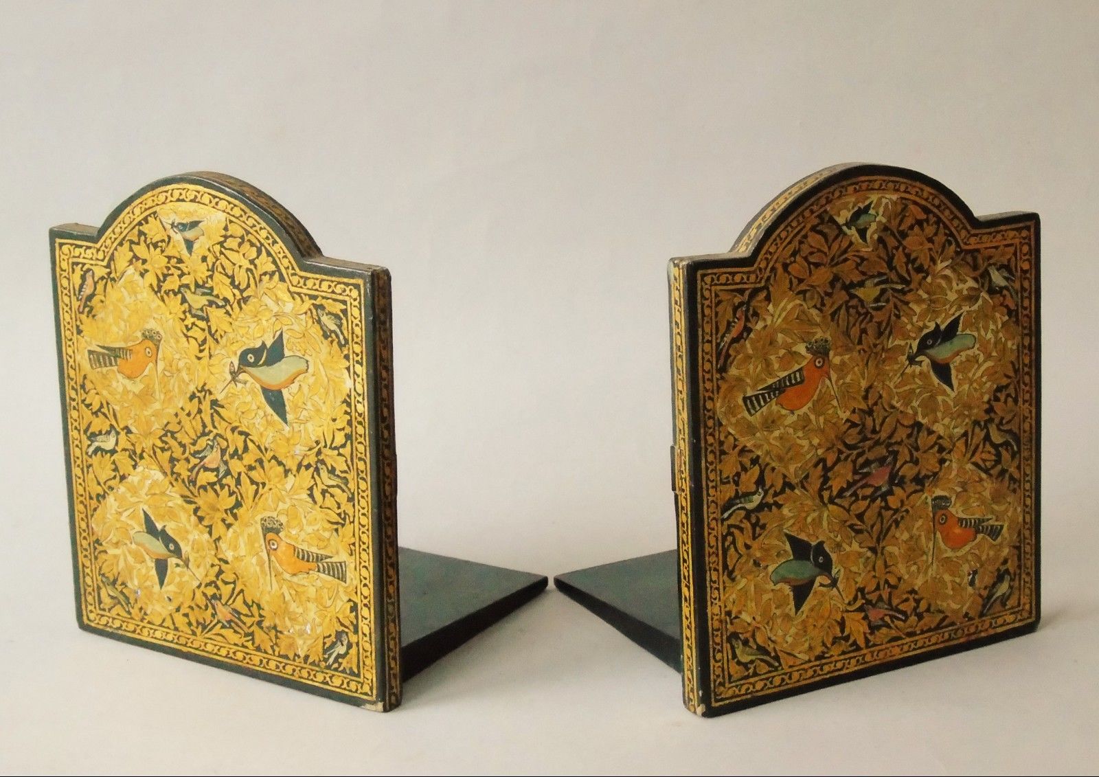 Pretty Pair of Kashmir Hand Painted Bookends Shrinagar