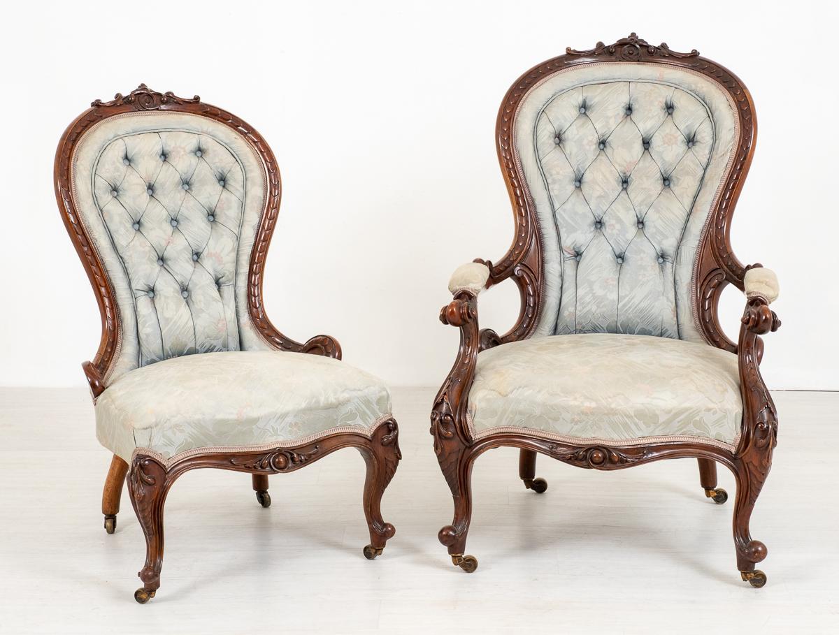 Pretty Pair of Victorian His and Her Walnut Parlour Chairs