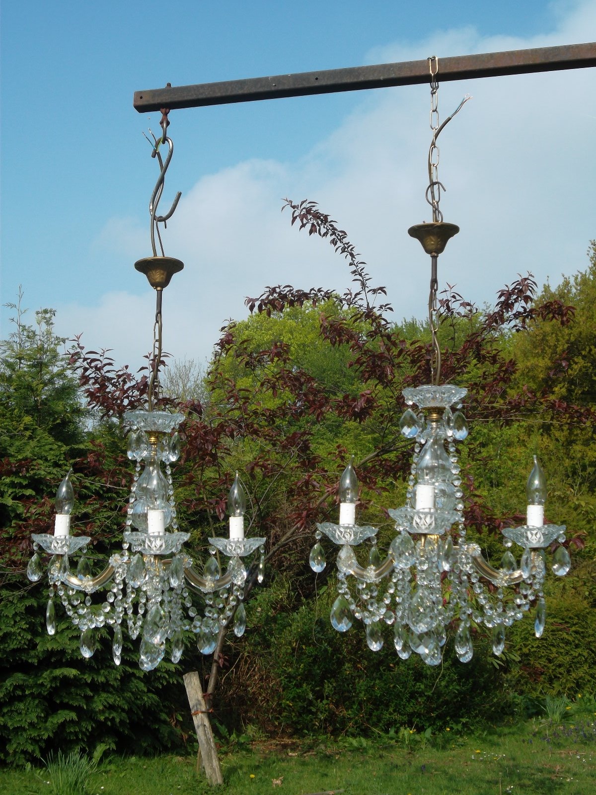 Pretty Pair of Vintage French 3 Arm Glass Maria Theresa Chandeliers