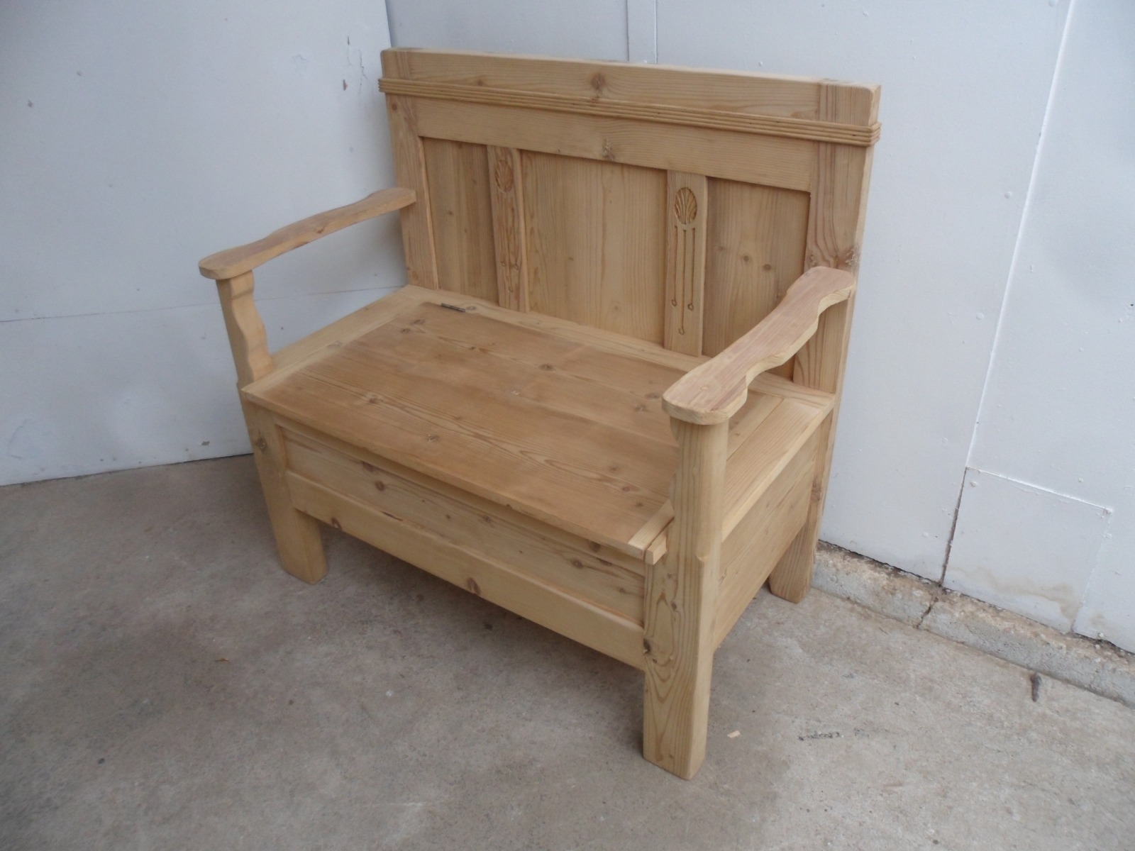 Pretty Panelled Old Pine 1/2 Seater Box Settle / Bench to paint / wax