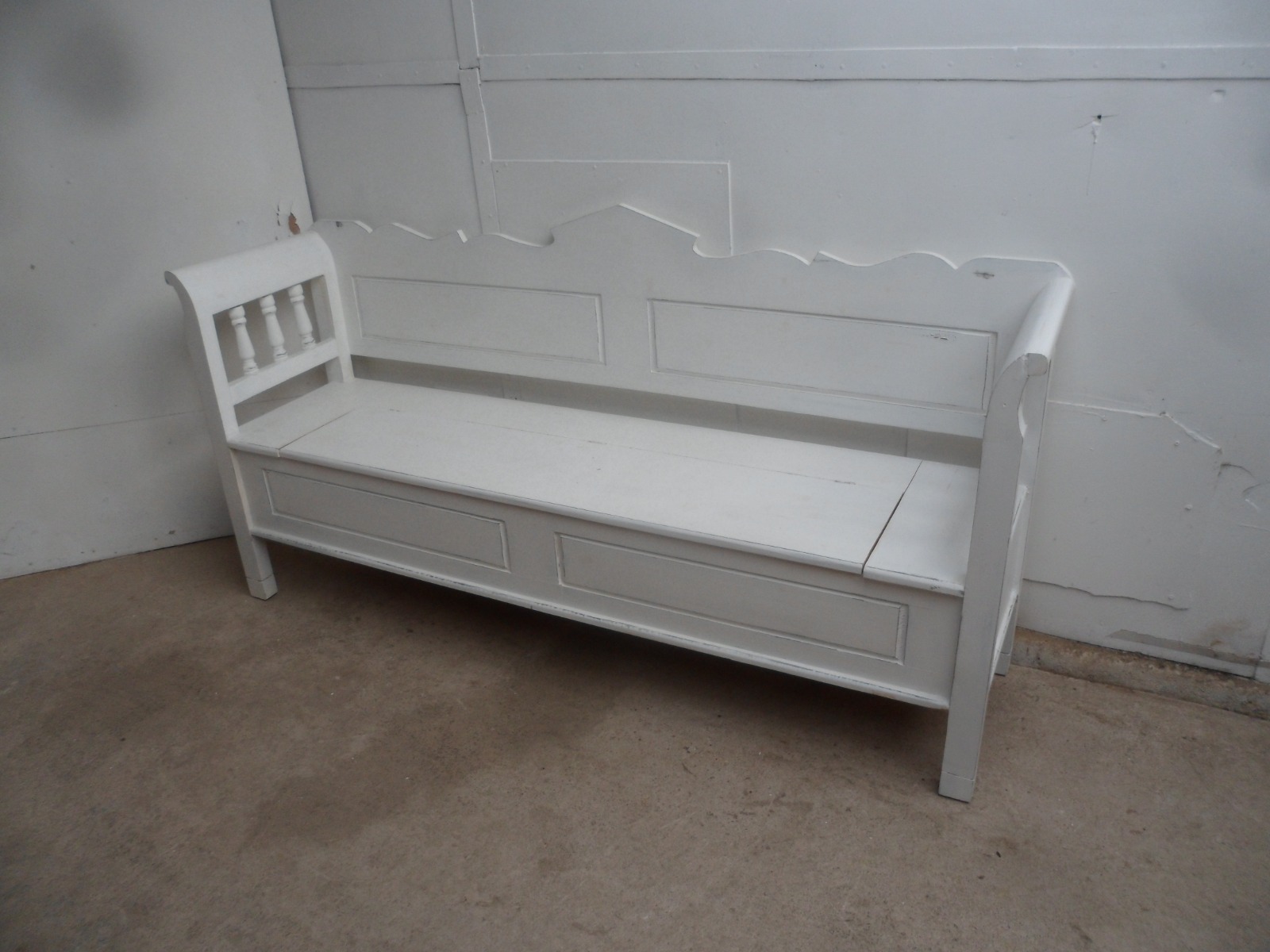 Pretty Panelled Painted White Old Pine 3/4 Seater Box Settle / Bench
