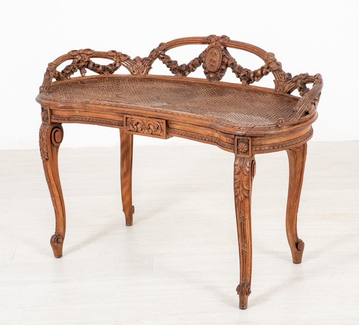 Pretty Pine Carved French Stool (1 of 8)