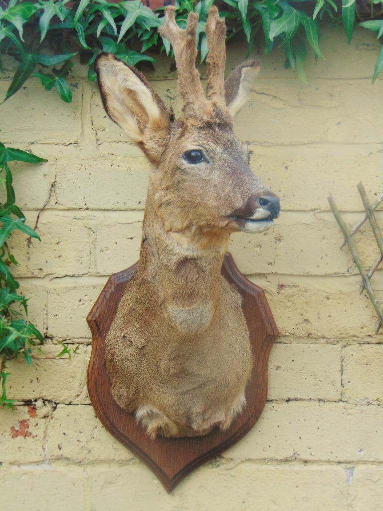 Pretty Roe Deer Taxidermy Mount Antlers in Velvet on Oak Shield