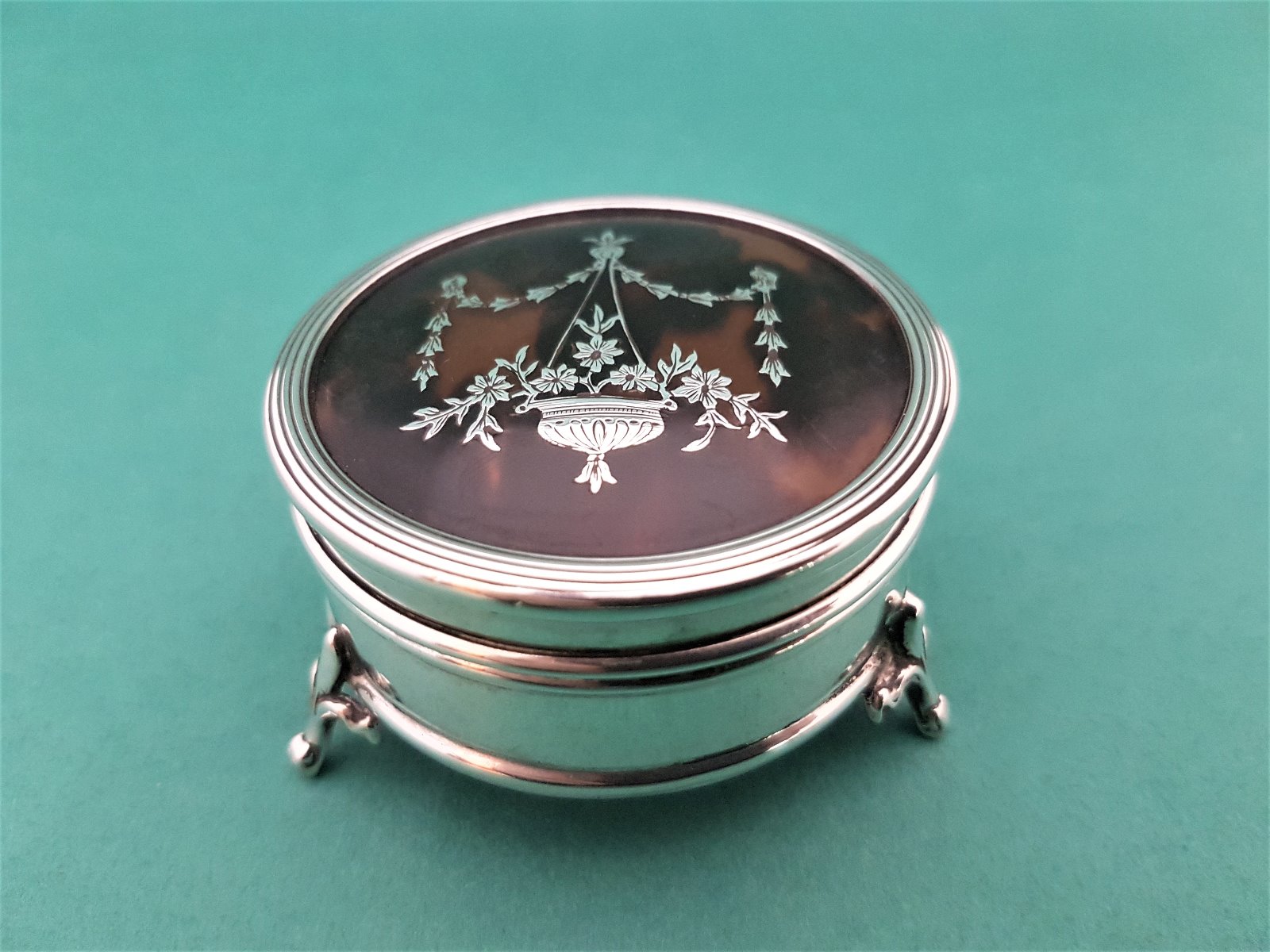 Pretty Round Antique Edwardian Silver & Tortoiseshell Trinket Box