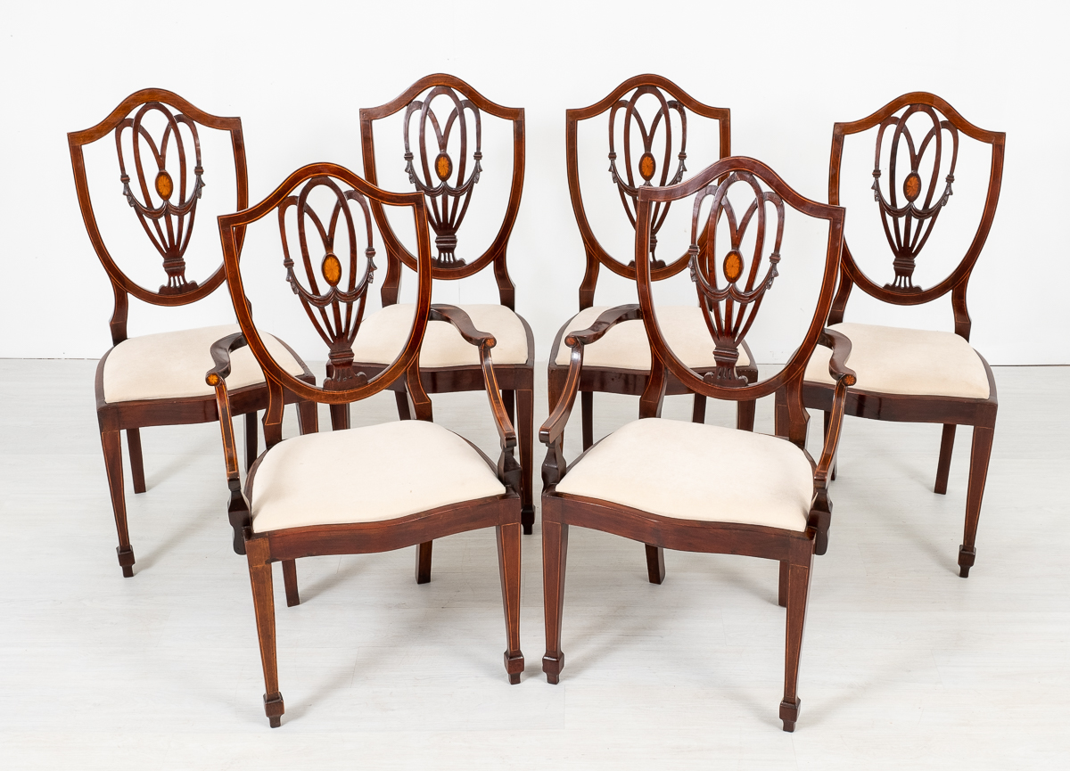 Pretty Set of 6 Mahogany Sheraton Style Dining Chairs