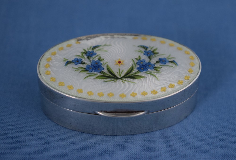 Pretty Silver & Guilloche Enamel Snuff Box Chester 1910 Saunders & Shepherd Painted Flowers Forget-Me-Nots Edwardian