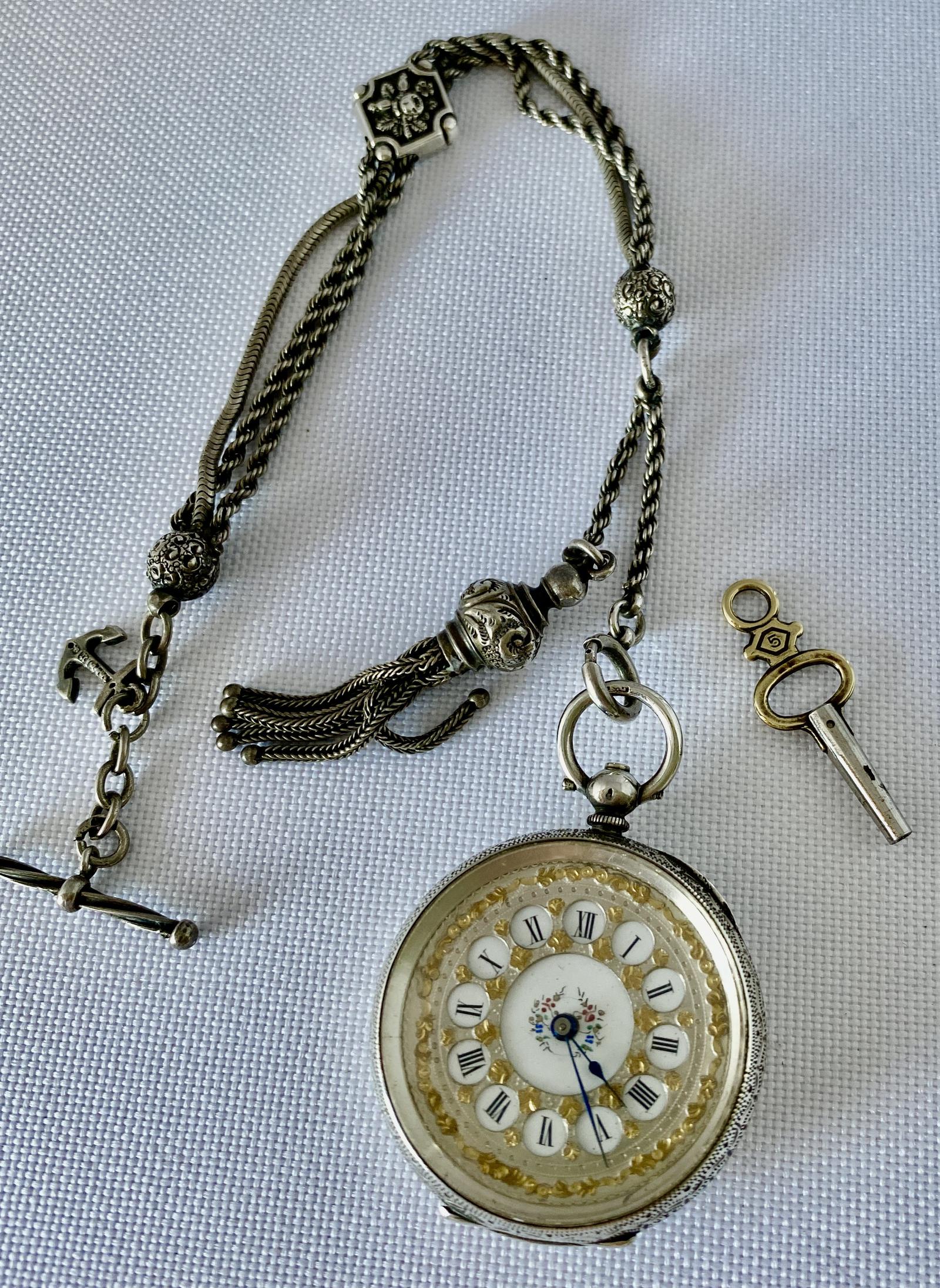 Pretty Silver Ladies Fob Watch & Fob c.1890