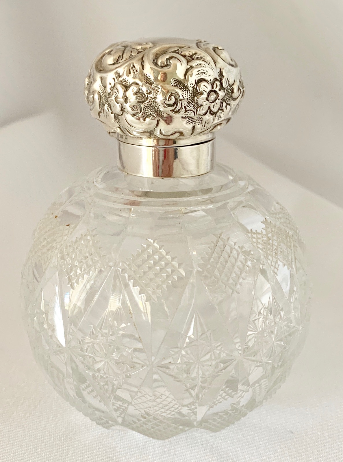 Pretty Silver Mounted Perfume / Scent Bottle 1901