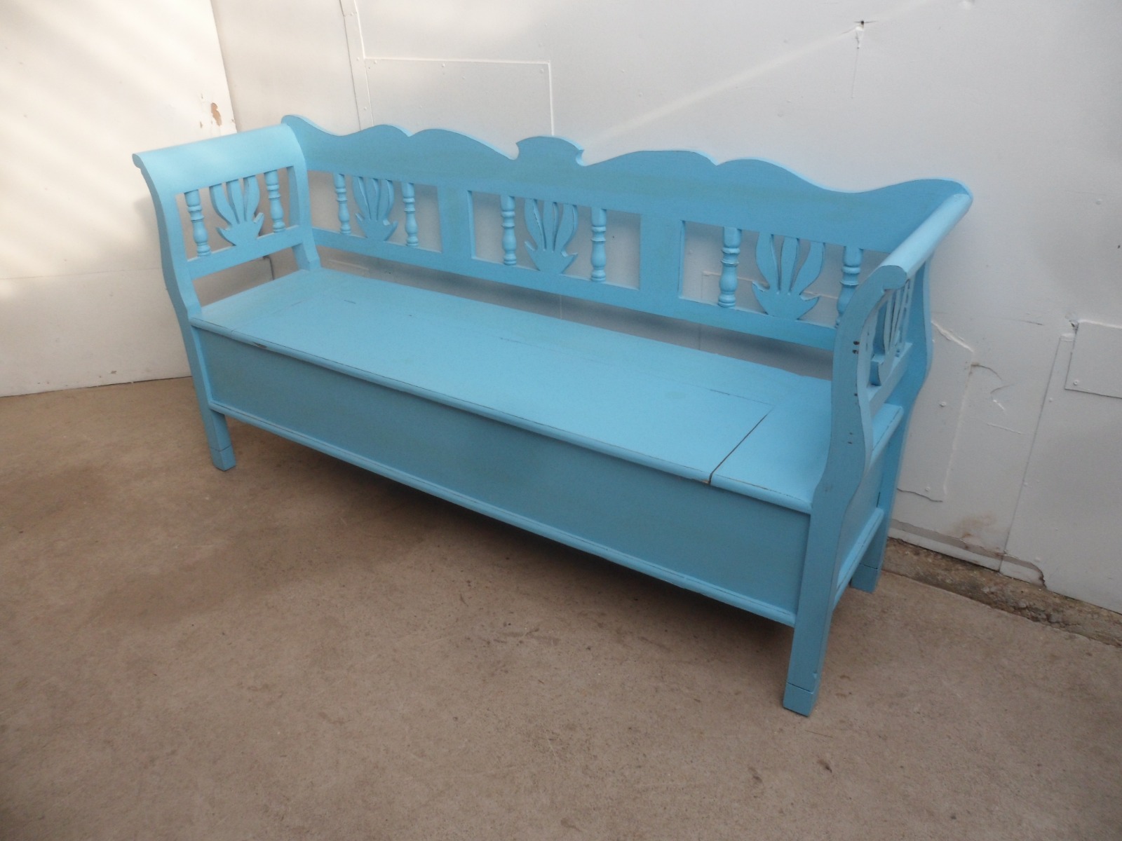 Pretty Sky Blue Old Pine 3 Seater Box Settle / Bench