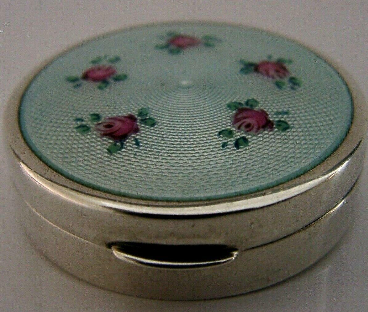 Pretty Sterling Silver Enamel Pill Snuff Box Art Deco c.1920