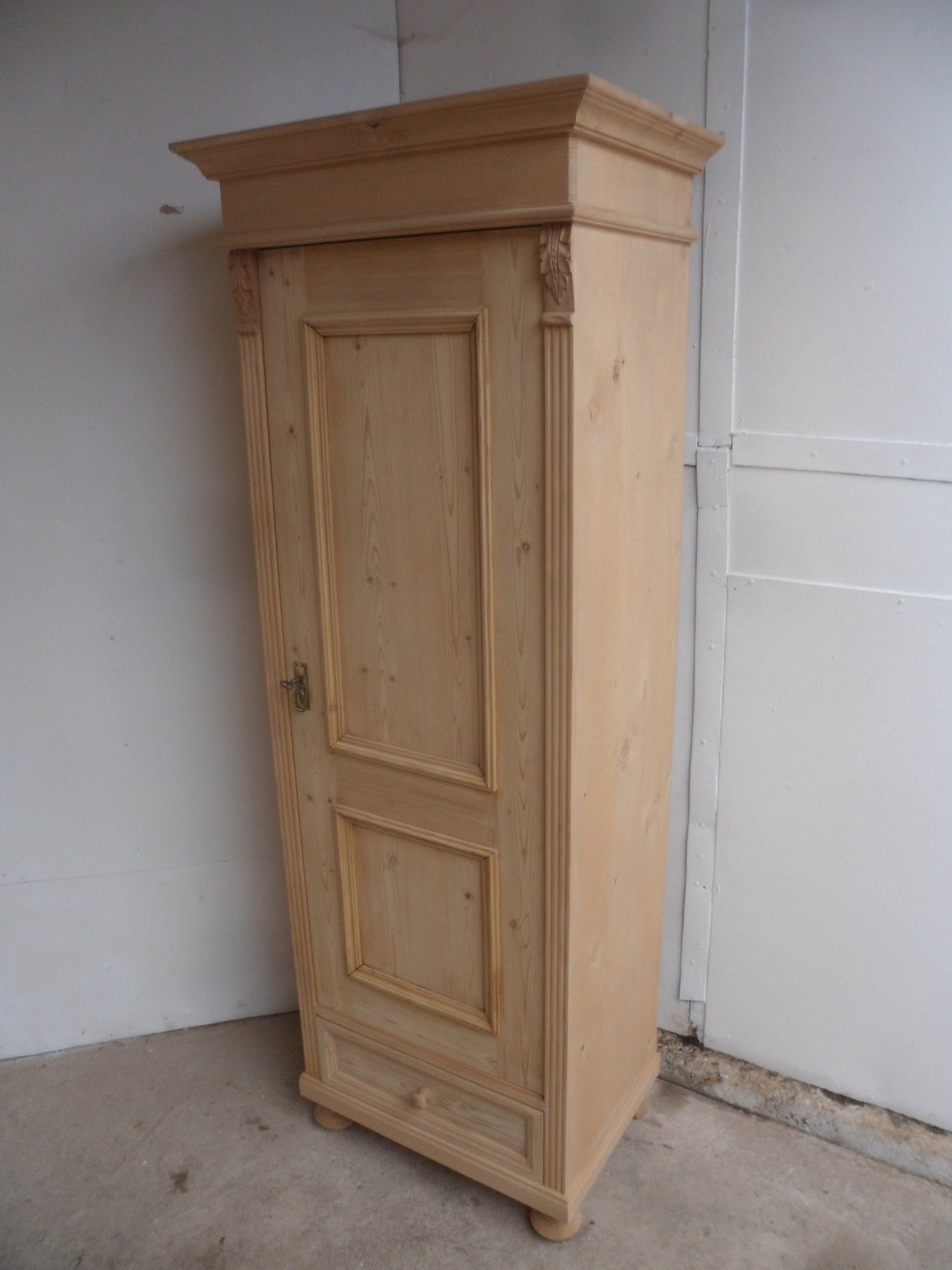 Pretty Tall Thin Pine 1 Door 1 Drawer Kitchen Cupboard to wax / paint c.1920