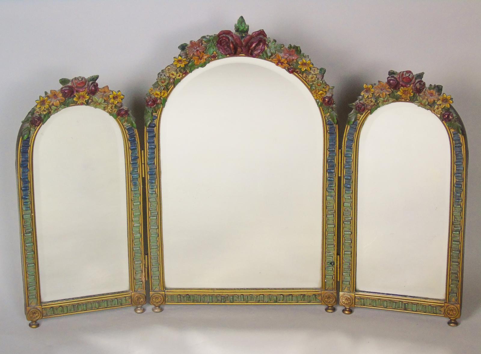Pretty Triple Plate Barbola Dressing Table Mirror
