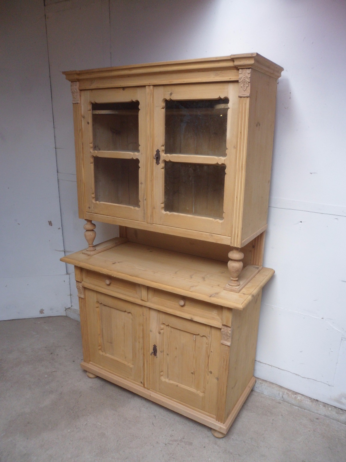 Pretty Victorian Antique Pine Columned 2 Piece Kitchen Dresser to wax / paint