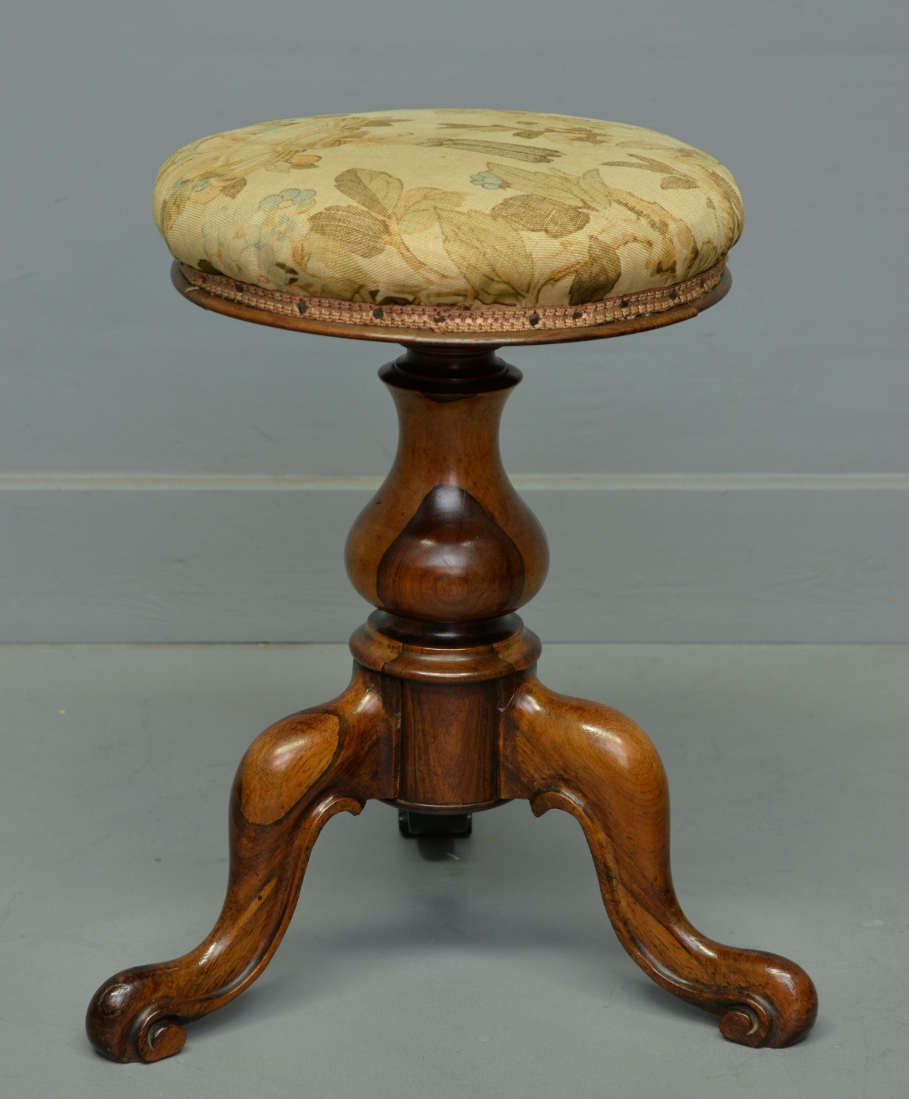 Pretty Victorian Rosewood Adjustable Piano / Dressing Table Stool