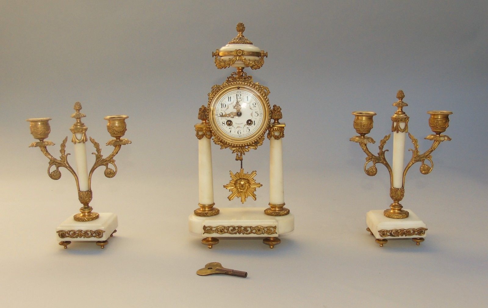 Pretty Victorian White Marble & Gilt Ormolu Clock Garniture (1 of 1)