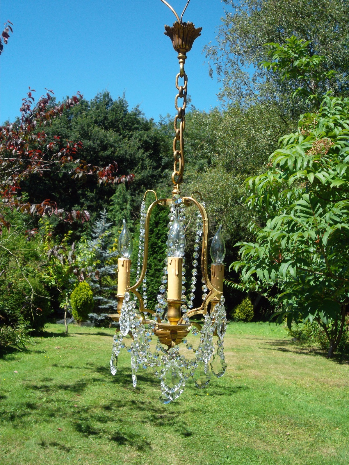 Pretty Vintage French 3 Arm Cage Chandelier with Swarovski Drops