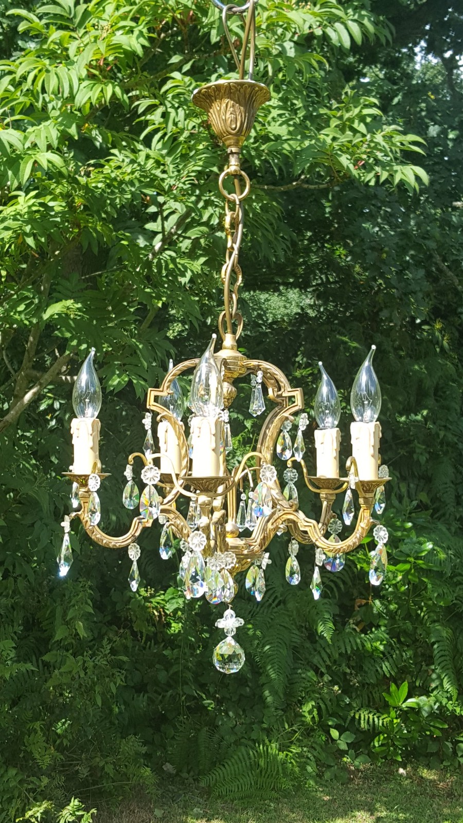 Pretty Vintage French 5 Arm with Swarovski Drops Chandelier
