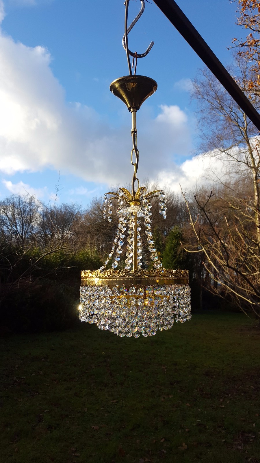 Pretty Vintage French Brass Empire Style Swarovski Small Chandelier