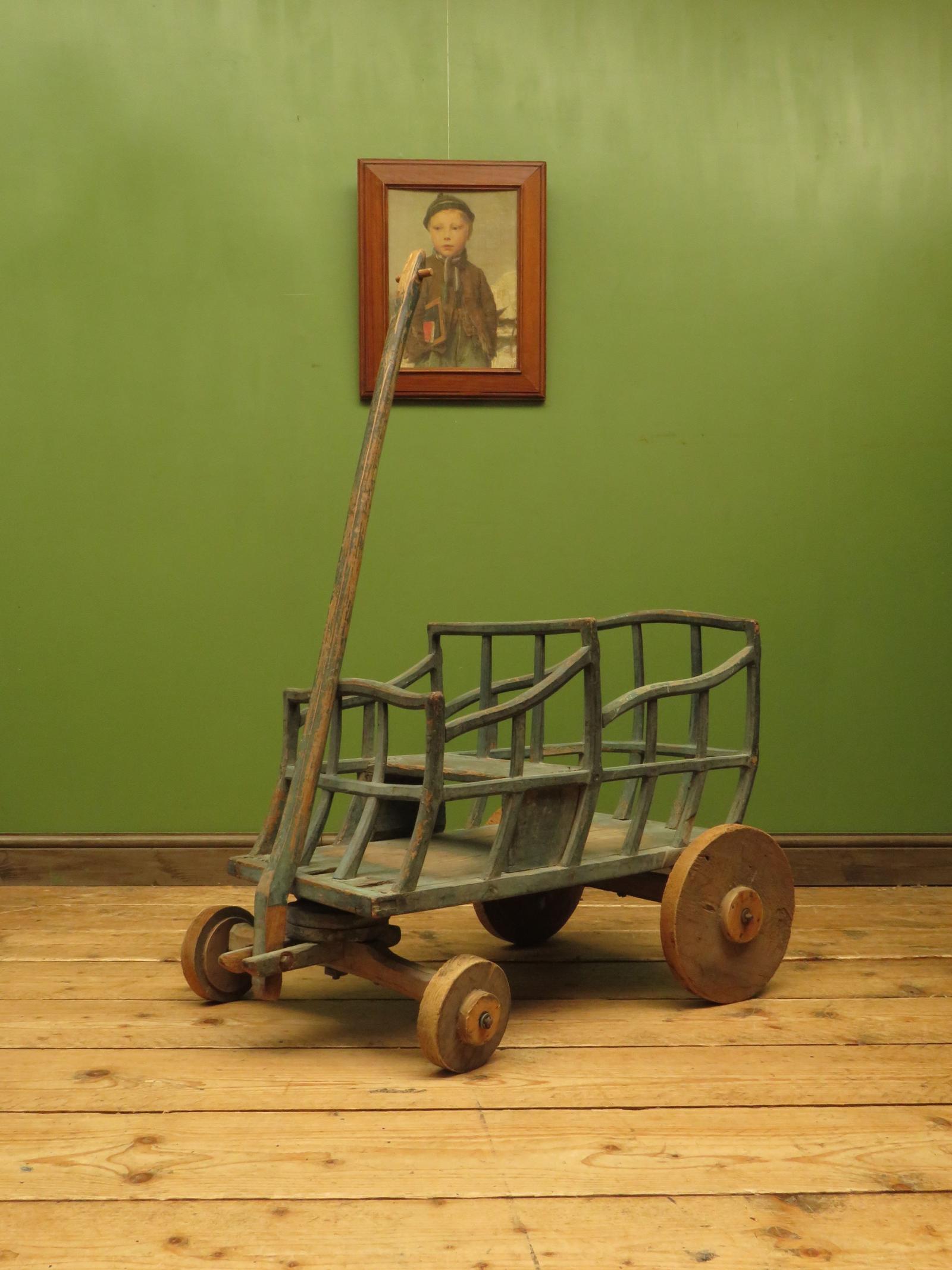 Primitive Antique Wooden Cart with Old Blue Painted Finish