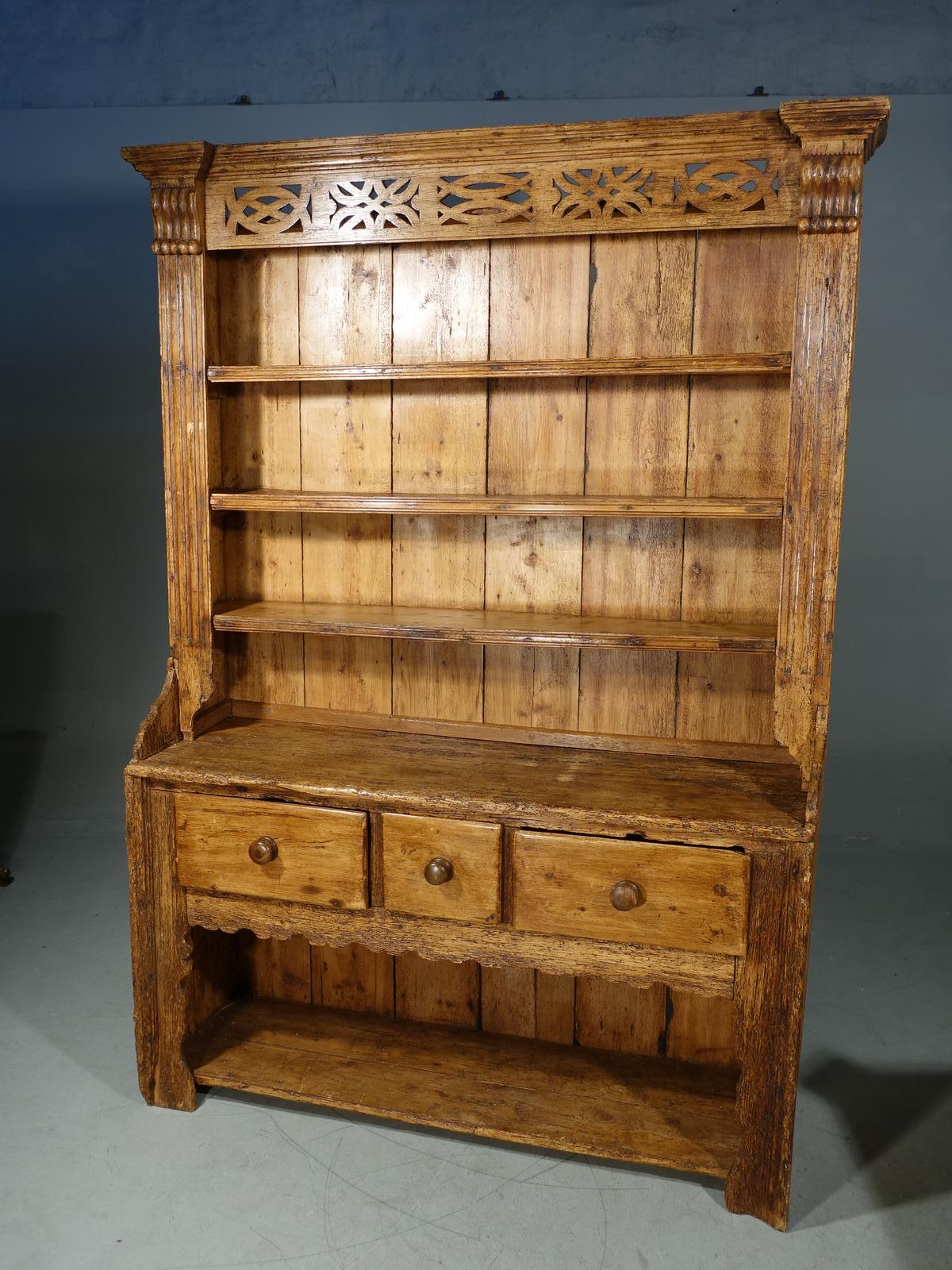 Primitive, French, Mid 19th Century, Pine Dresser & Rack