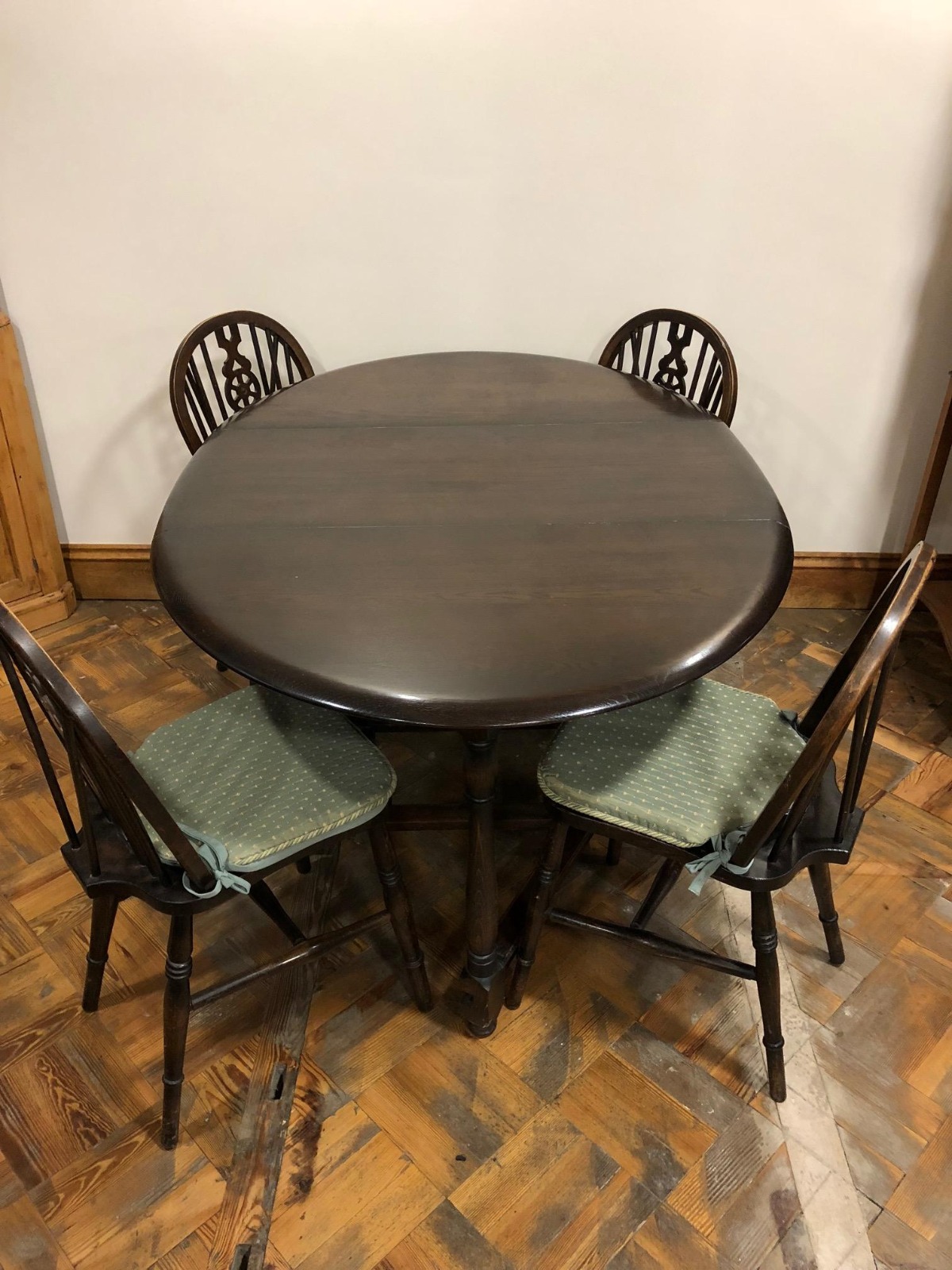 Priory Style Oak Drop Leaf Dining Table with Four Chairs (1 of 1)