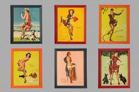 Professionally Framed Original 1950s Pin-up Litho Cards – Set of 12