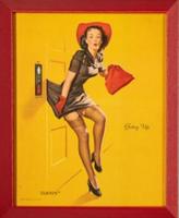 A striking set of twelve original 1950s pin-up showgirl cards by Louis F. Dow St. Paul Minn - Litho USA , now newly professionally mounted and framed for a bold, playful statement. Each card features an illustration full of charm, humour, and flirtation, capturing the golden era of pin-up artistry. The vibrant colours and cheeky scenarios reflect the post-war optimism and glamour of the time. Framed individually in coordinating wooden frames with bright pops of red, orange, and black, these pieces are ready to hang and make a fabulous feature grouped together or displayed separately. Ideal for collectors, lovers of vintage design, or anyone looking to add a touch of retro fun to their interiors. Dow has been a professional printmaker for over 35 years, running professional, commercial printmaking studios in Los Angeles, Indiana, Fundão, Portugal and Miami. At each of these locations he made his own art; worked with artists from around the world who have an interest in printmaking, especially etchings and monotypes and monoprints; did workshops and was generally supportive of aspiring and accomplished printmakers and artists.