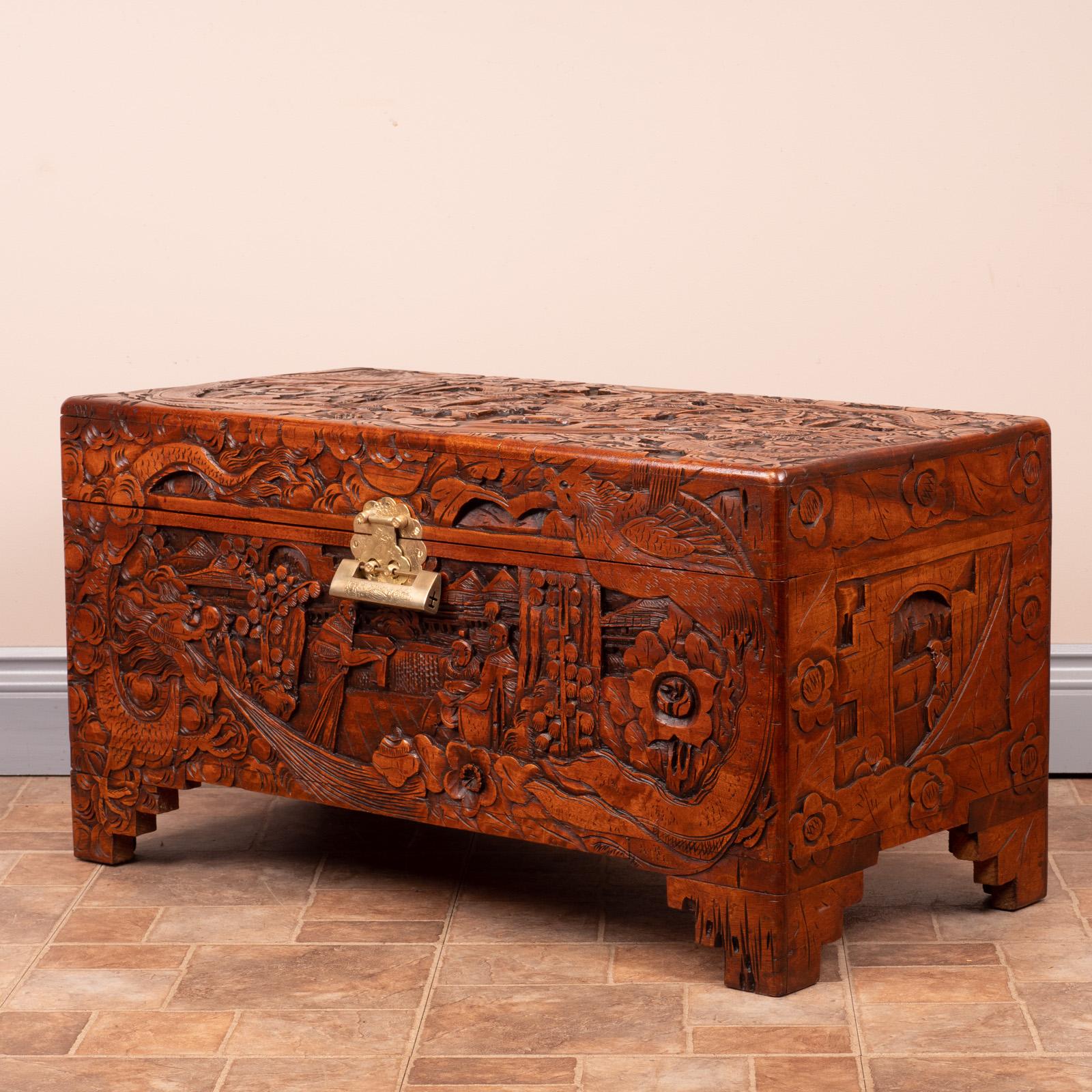 Profusely Carved Oriental Camphorwood Lined Trunk