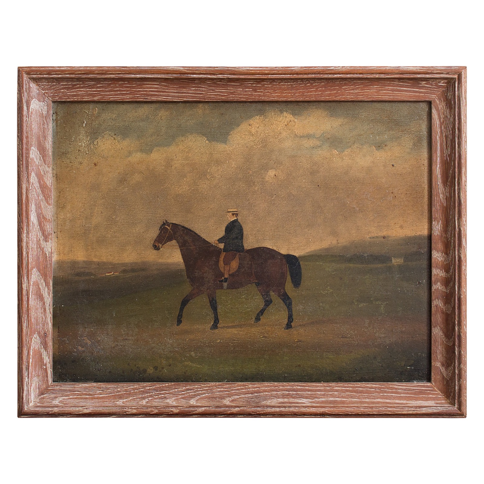 Provincial English School Horse & Rider, Naive 19th Century Oil Painting, Equestrian