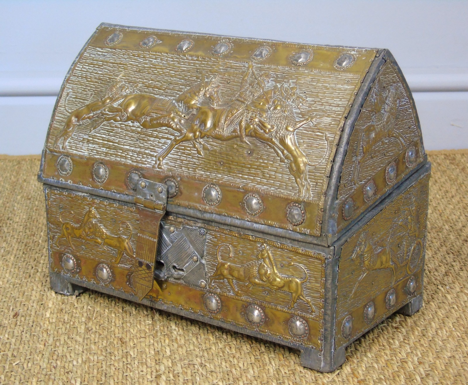 Qajar Dome Top Casket with Chariots & Lion Hunting Scenes