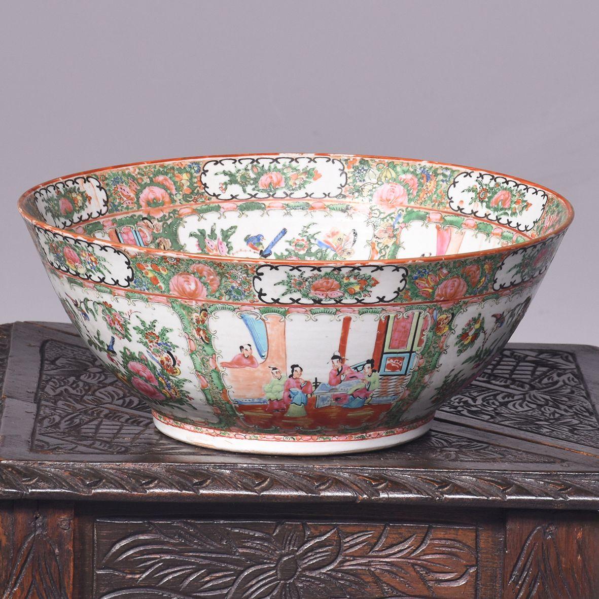 Qing Dynasty Canton (Mandarin) Famille Rose and Famille Verte Large Punch Bowl (1 of 8)
