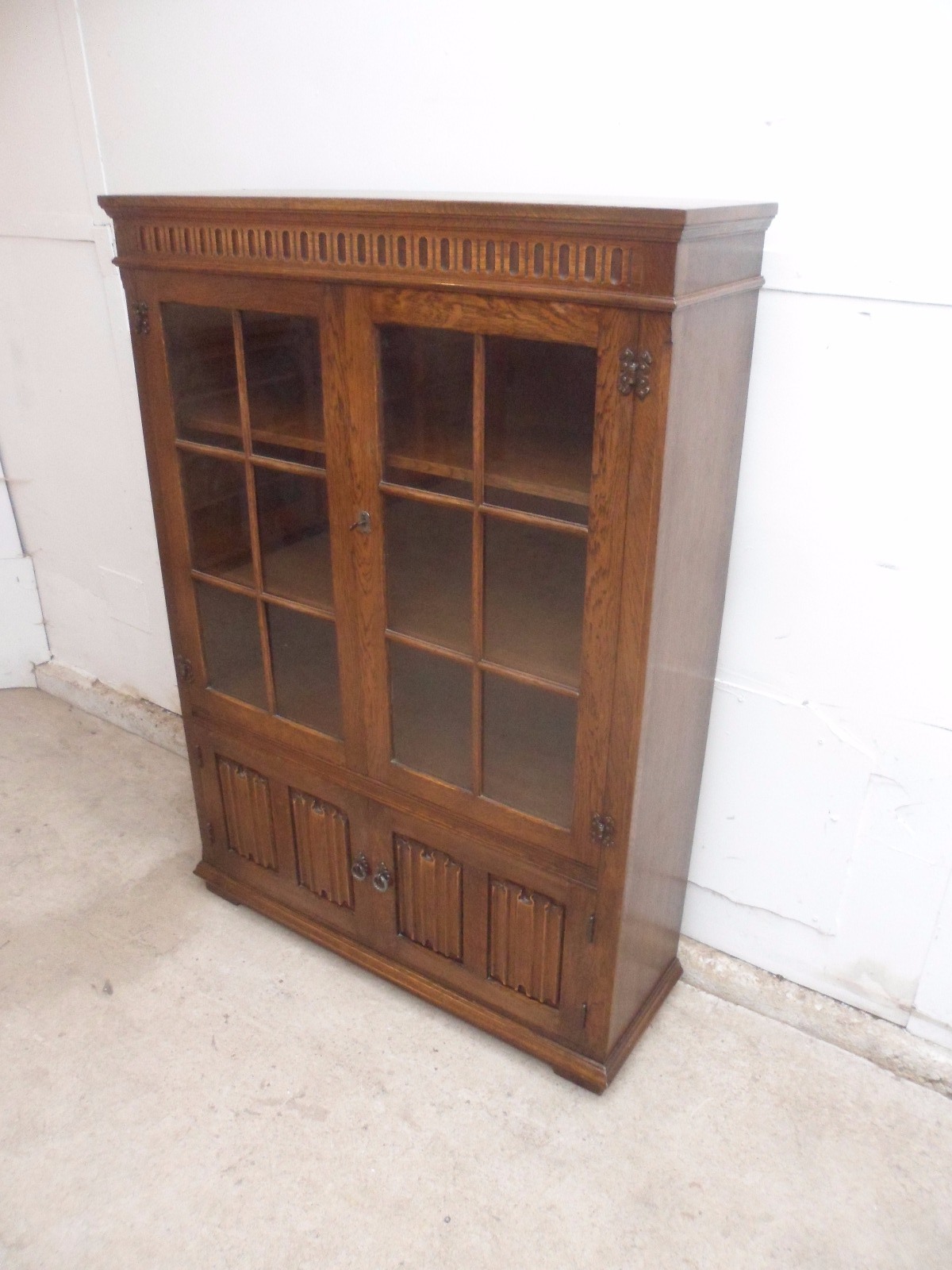 Quality 1920s Glazed Linen Fold 4 Door Adjustable Bookcase