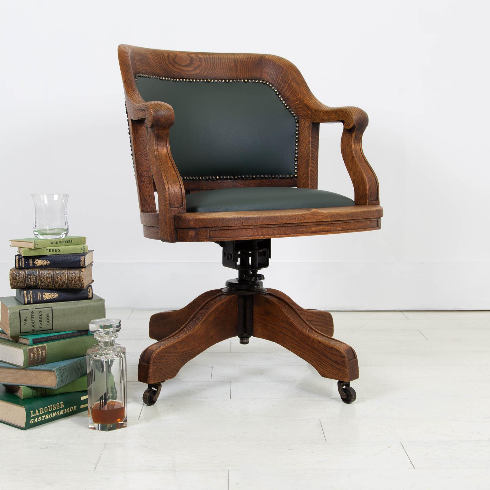 Quality 1920s Oak & Leather Swivel Desk Chair