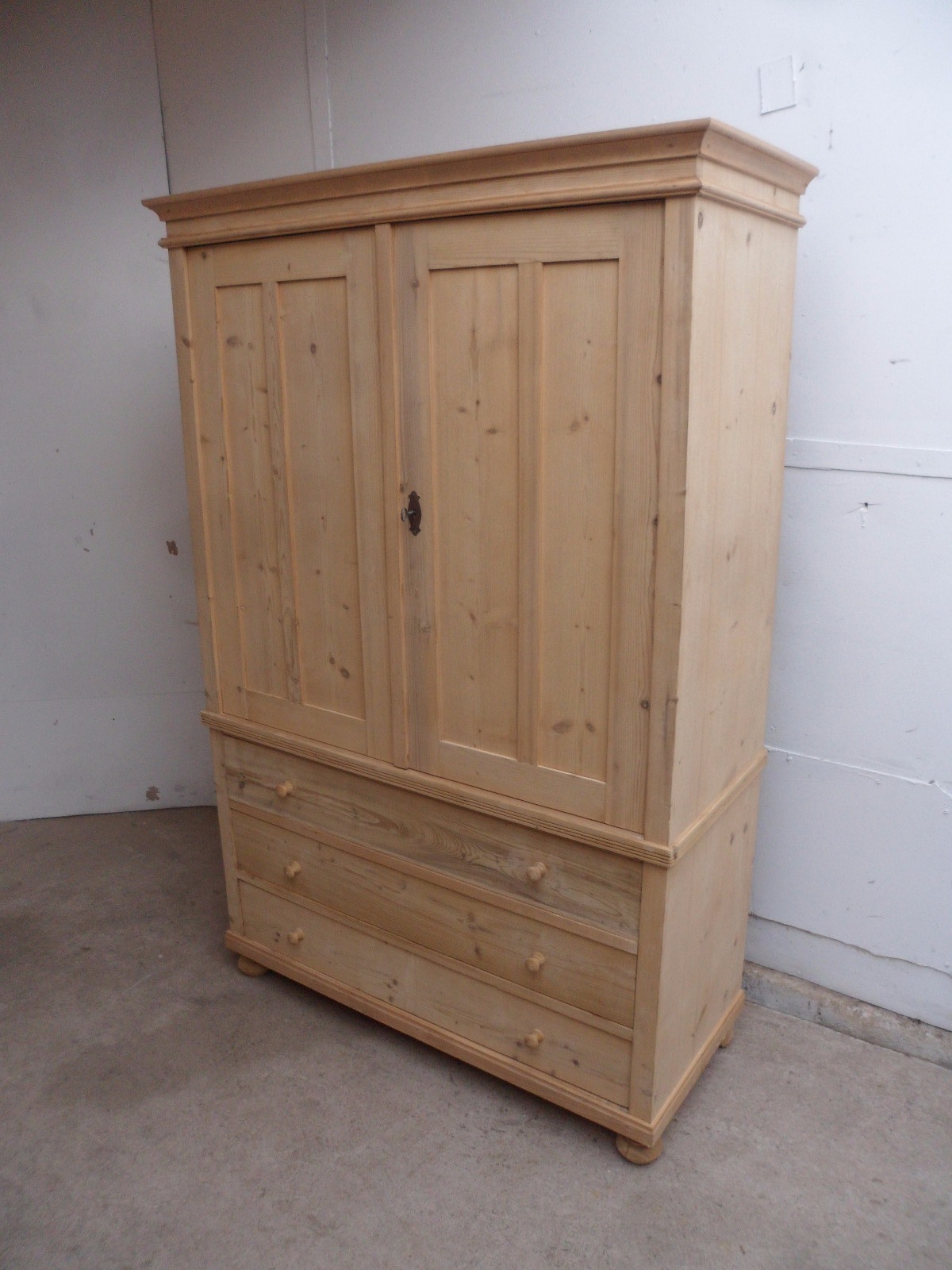 Quality 2 Piece Large Old Pine Linen Wardrobe to wax / paint