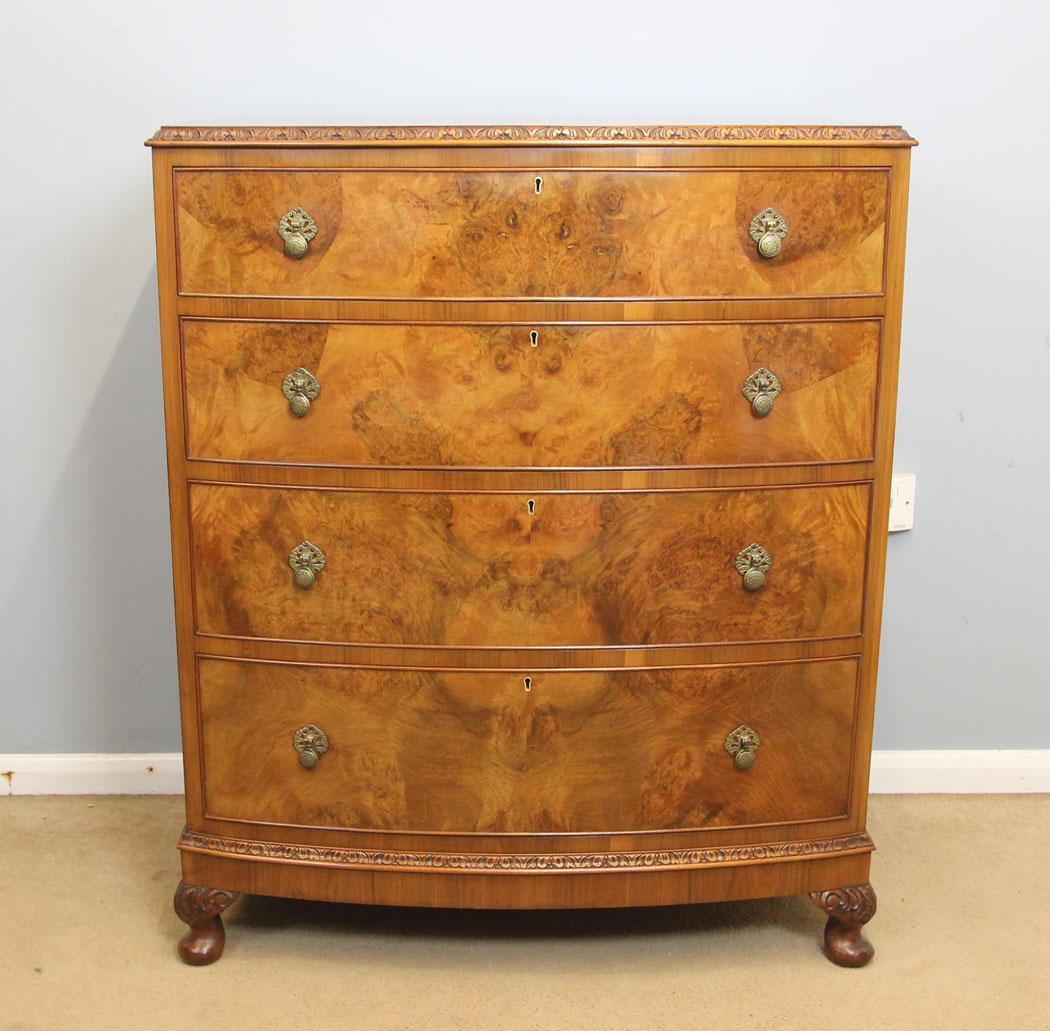 Quality Antique Bow Front Burr Walnut Chest of Drawers