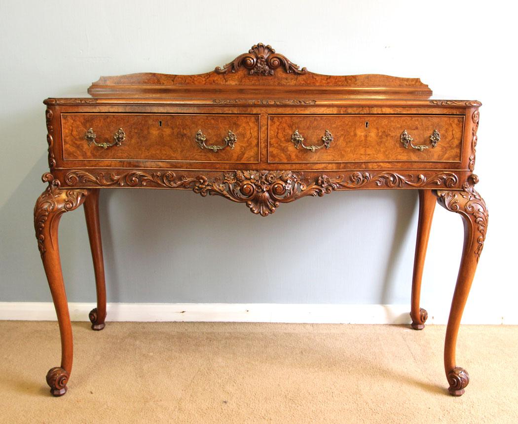 Quality Antique Burr Walnut Serpentine Front Serving Side Table