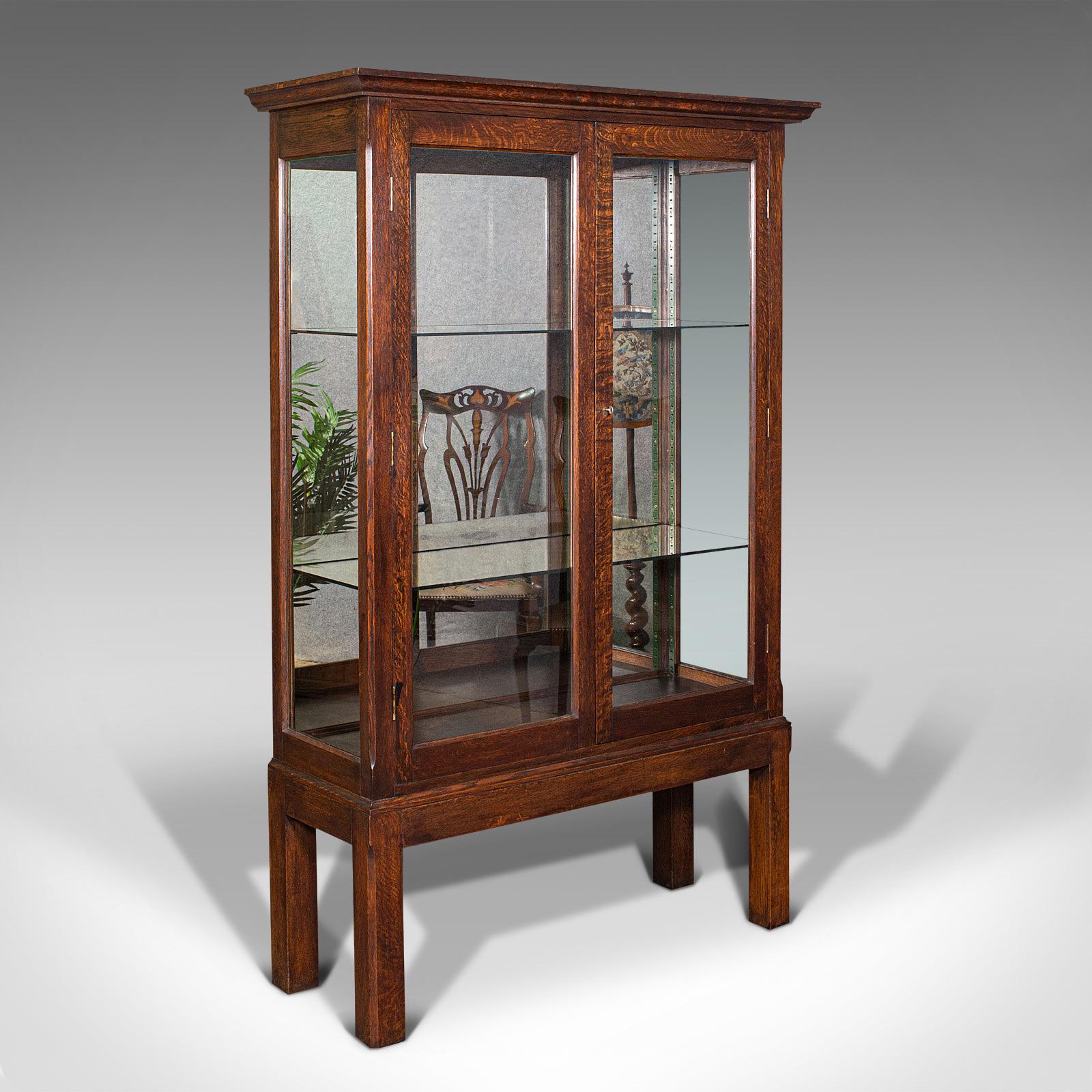 Quality Antique Display Cabinet, English, Oak, Retail, Showcase, Edwardian c.1910
