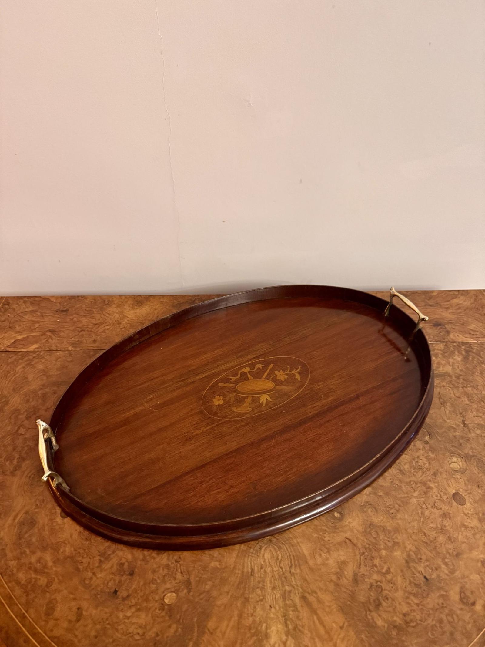Quality Antique Edwardian Mahogany Inlaid Oval Tea Tray
