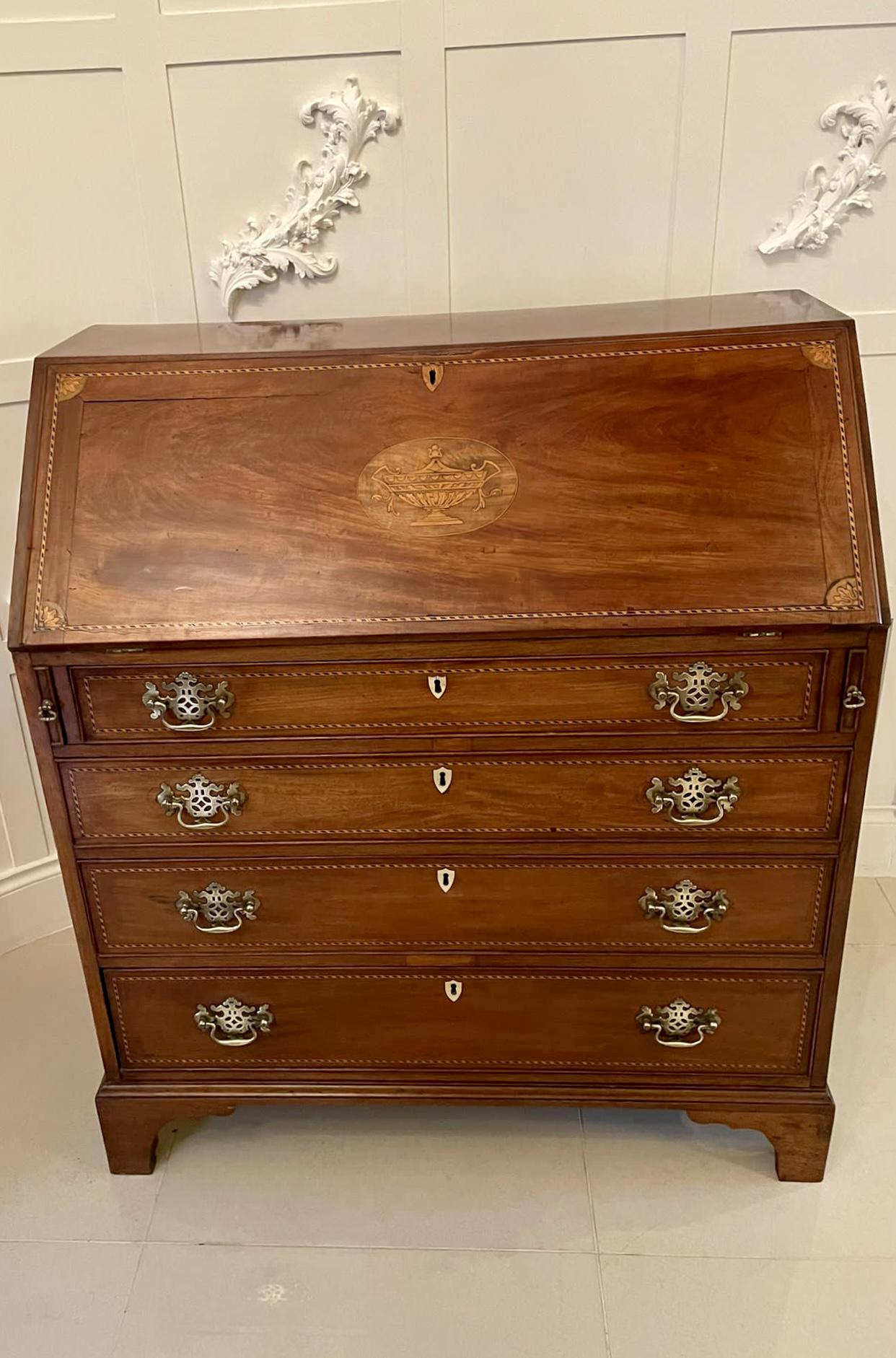 Quality Antique George III Mahogany Inlaid Bureau (1 of 20)