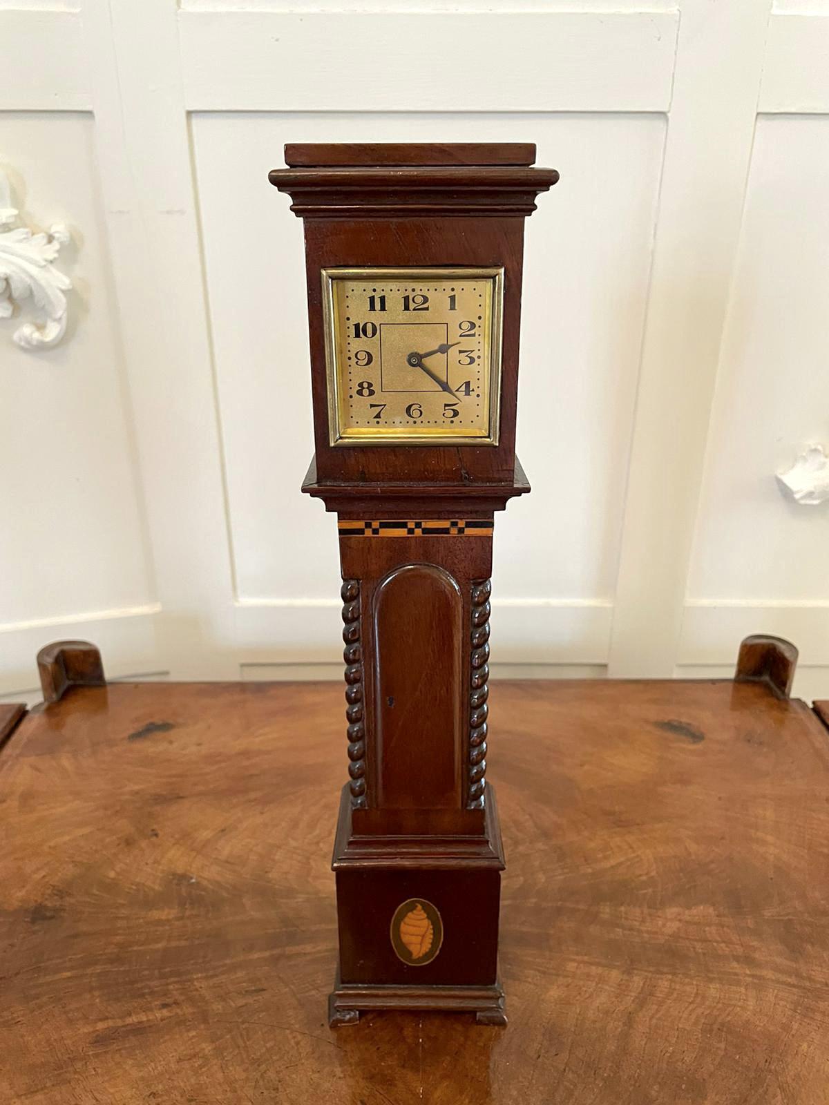 Quality Antique Inlaid Mahogany Miniature Grandfather Clock