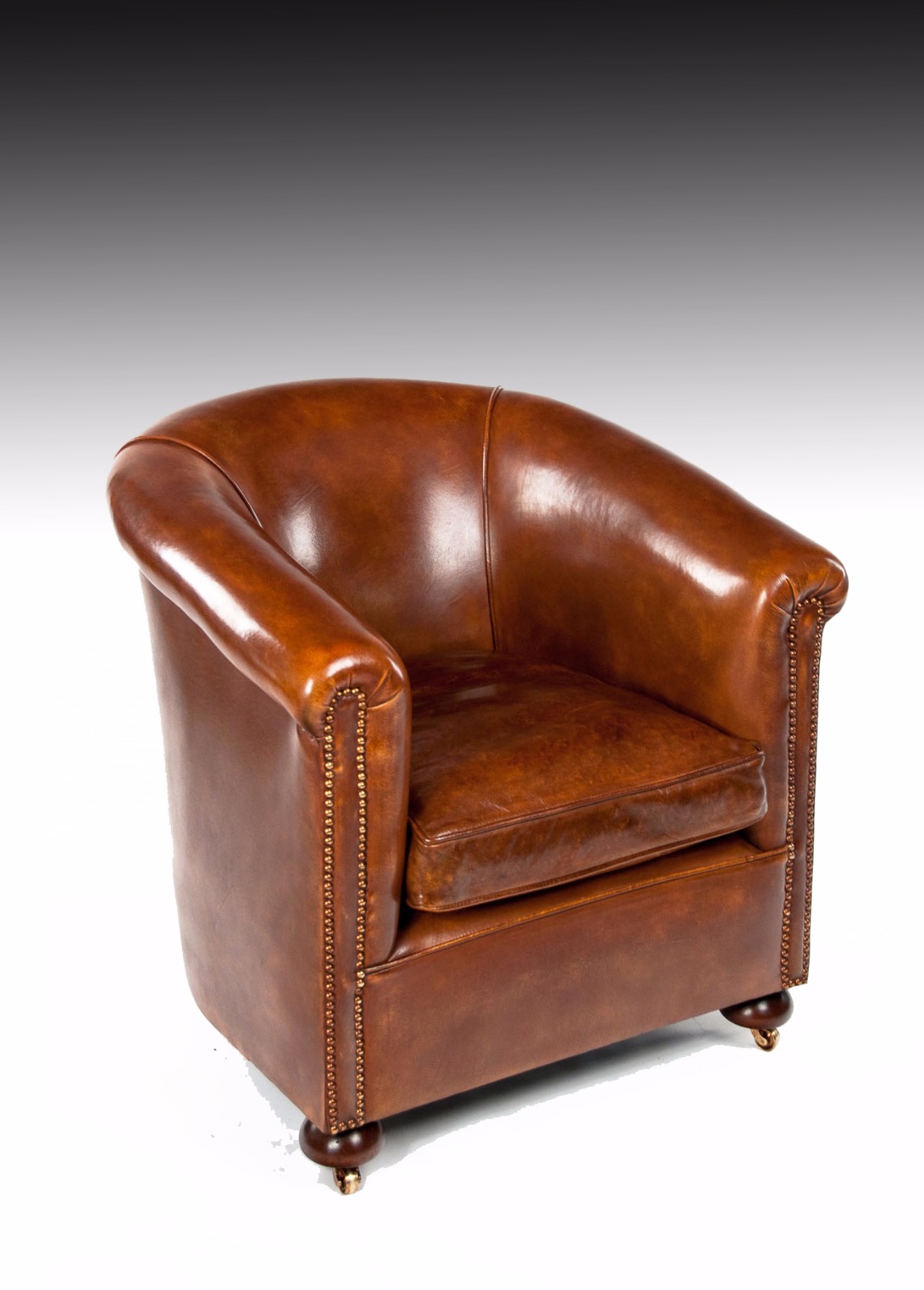 Quality Antique Leather Tub Armchair c.1910 (1 of 1)